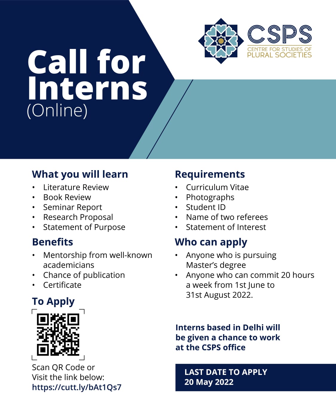 Centre For Studies Of Plural Societies On Twitter The Csps Invites Applications For Its Upcoming Internship Program Starting From 1 June 2022 It Is An Excellent Opportunity For Anyone Who Wants To